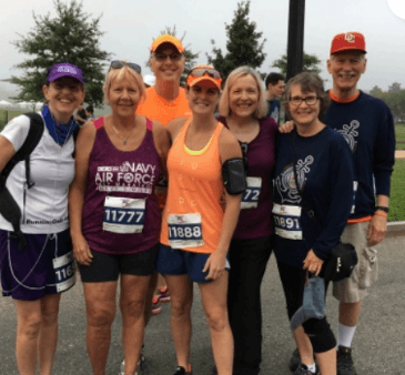 This is the third year doing the Navy/Air Force race. I met up with my race partner from 2016’s Baltimore Running Festival half marathon and some of her family. Her husband, a niece, two cousins and one of the cousin’s husbands all did the 5 miler, although Therese and her cousins and I did the 5 miler. We were absolutely last. From about the first half mile on we had a police car behind us followed by an ambulance and a pickup truck with the guys who were cleaning up the racecourse behind us. I regret not getting a picture of the entourage. When one of us stopped to use the port-a-potty the entourage stopped and waited. I wasn’t even sure if I could do the race. I’d been doing a new inhaled antibiotic which was causing my lungs to feel very tight. It was nice to have the company.